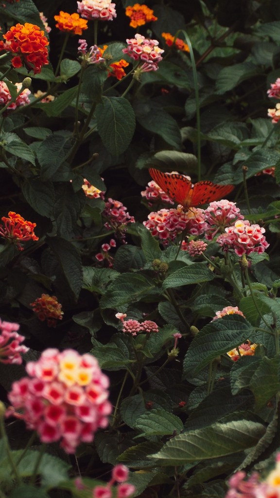 Lepidoptera does alight where it is rightโand sunnily bright, on a bed of red, where other pollinators, whether green with envy or blue due to shoo, bother not the butterfly with tritanomaly, who senses only that which is sweet enough to tickle its proboscis pink. ; )
