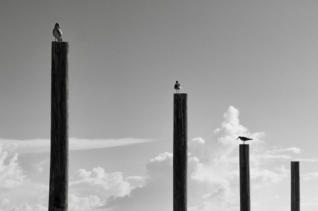 Perched queue of sandpipers seek clues re gallinippers for bills overdue to suppers . ; )