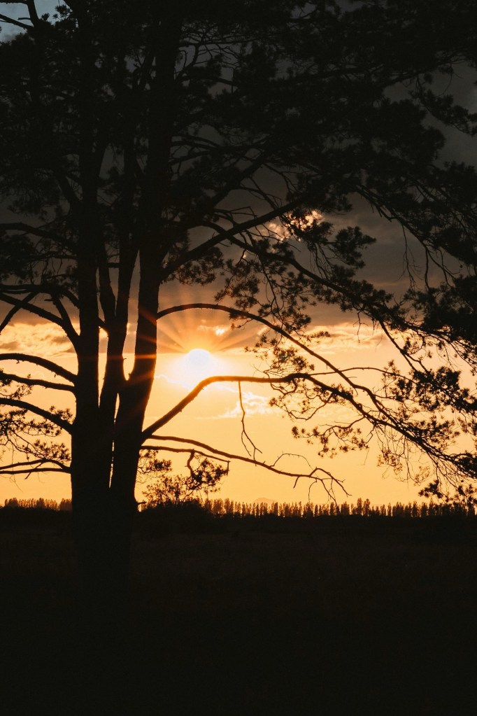 Through the surviving silhouette of stuggy trunk, arching arms, and brush punches, day bids adieu with a final burst of glow before dipping below the ease of lea’s trees tickling the breeze of horizon’s lulled bye. ; )