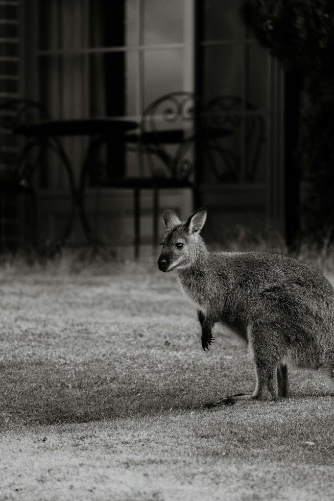 When in roam, wallaby takes the occasional pause, specifically to give way to a more macro macropod kind of roo.