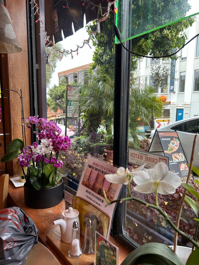 Perched upon her pedestrian pedestal, she was no more than a simple people watcher, though passersby who returned glances felt her posture tended towards a deiform delineation. ; )